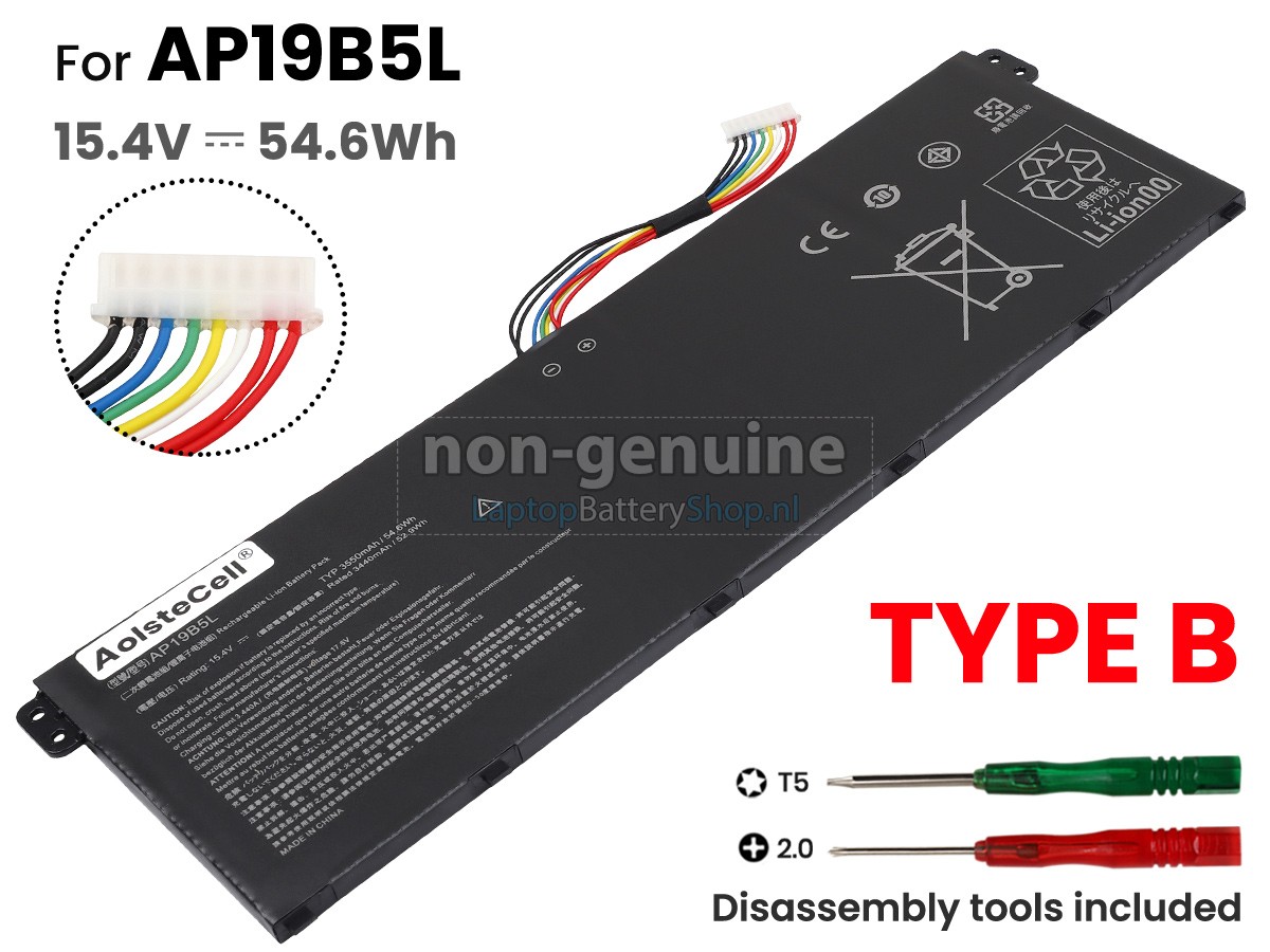 Controleer het model en de vorm van uw originele batterij van de Acer AP18C4K (gebruik Ctrl + F om naar modellen te zoeken). Zorg ervoor dat u de juiste batterij krijgt.