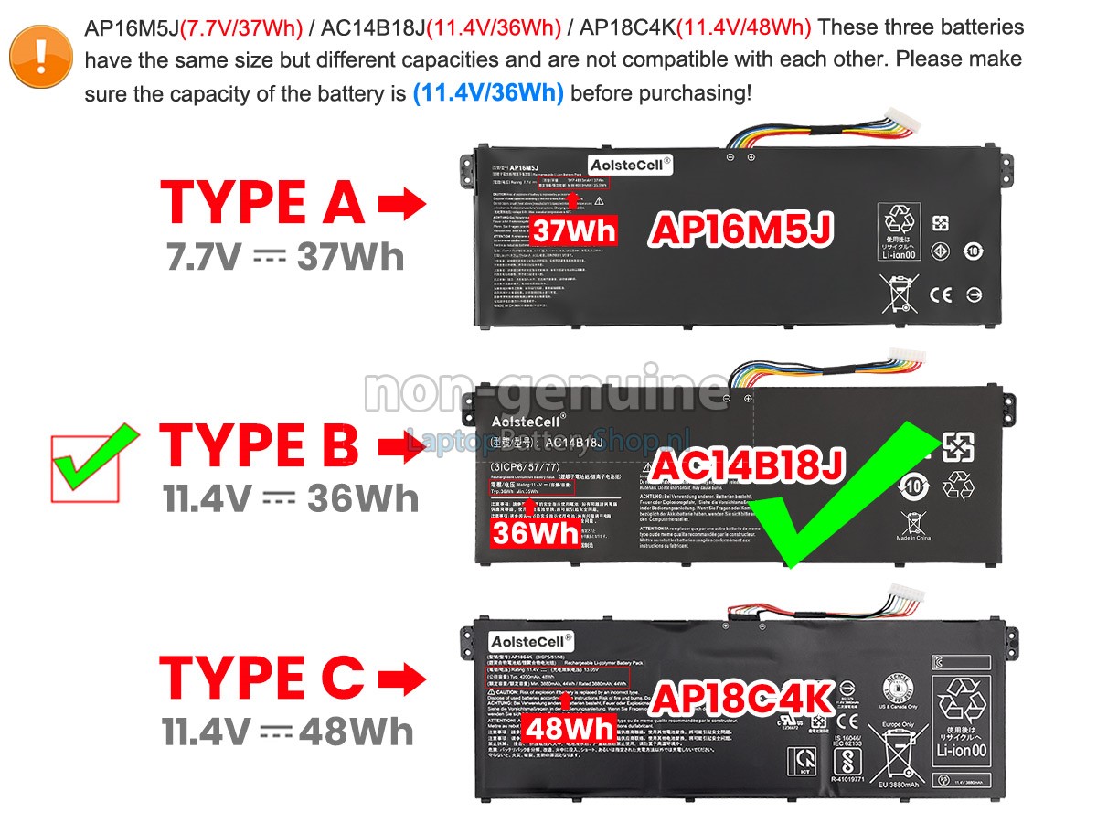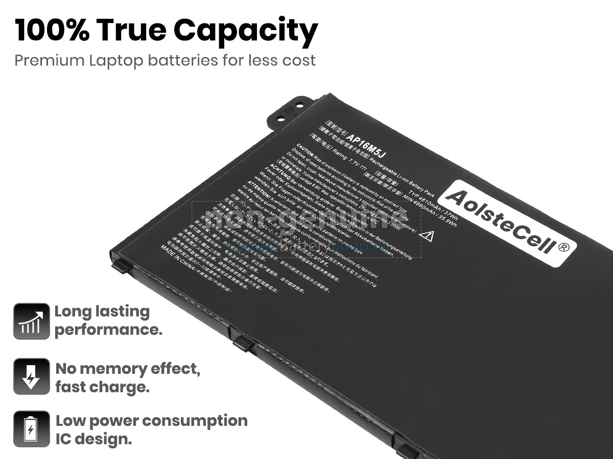 De Acer Aspire 3 A315-54-50YF accu met lange levensduur bevat A-batterijen voor een langere levensduur van de batterij en meer oplaadcycli. Snelle levering, gemakkelijke terugkeer, 100% restitutie binnen 30 dagen. Only fit for the battery model: AP16M5J or AP16M4J. Before placing an order please check your old battery first.