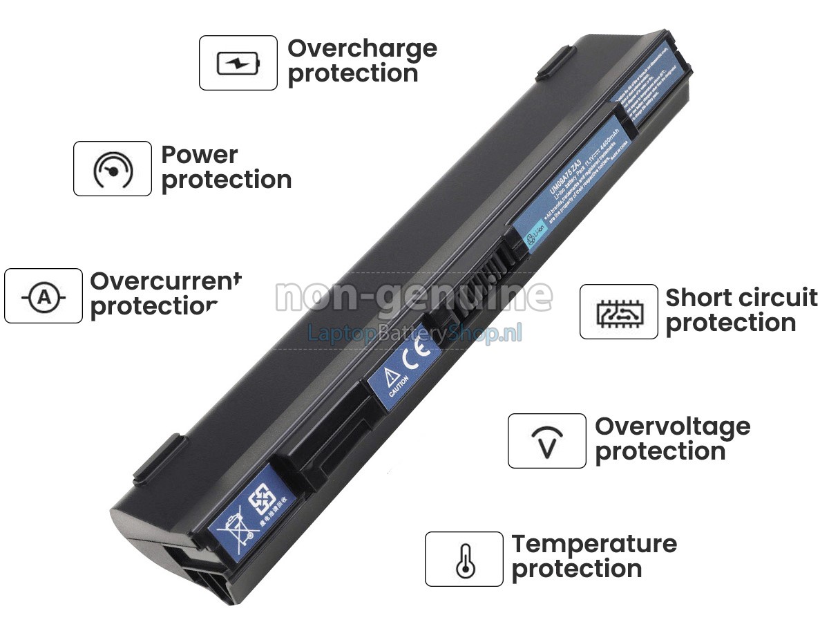 De Acer Aspire One AO531H-1791 accu met lange levensduur bevat A-batterijen voor een langere levensduur van de batterij en meer oplaadcycli. Snelle levering, gemakkelijke terugkeer, 100% restitutie binnen 30 dagen. This is a high capacity battery, the bottom of this battery will extend out about 1 inch(bigger size).