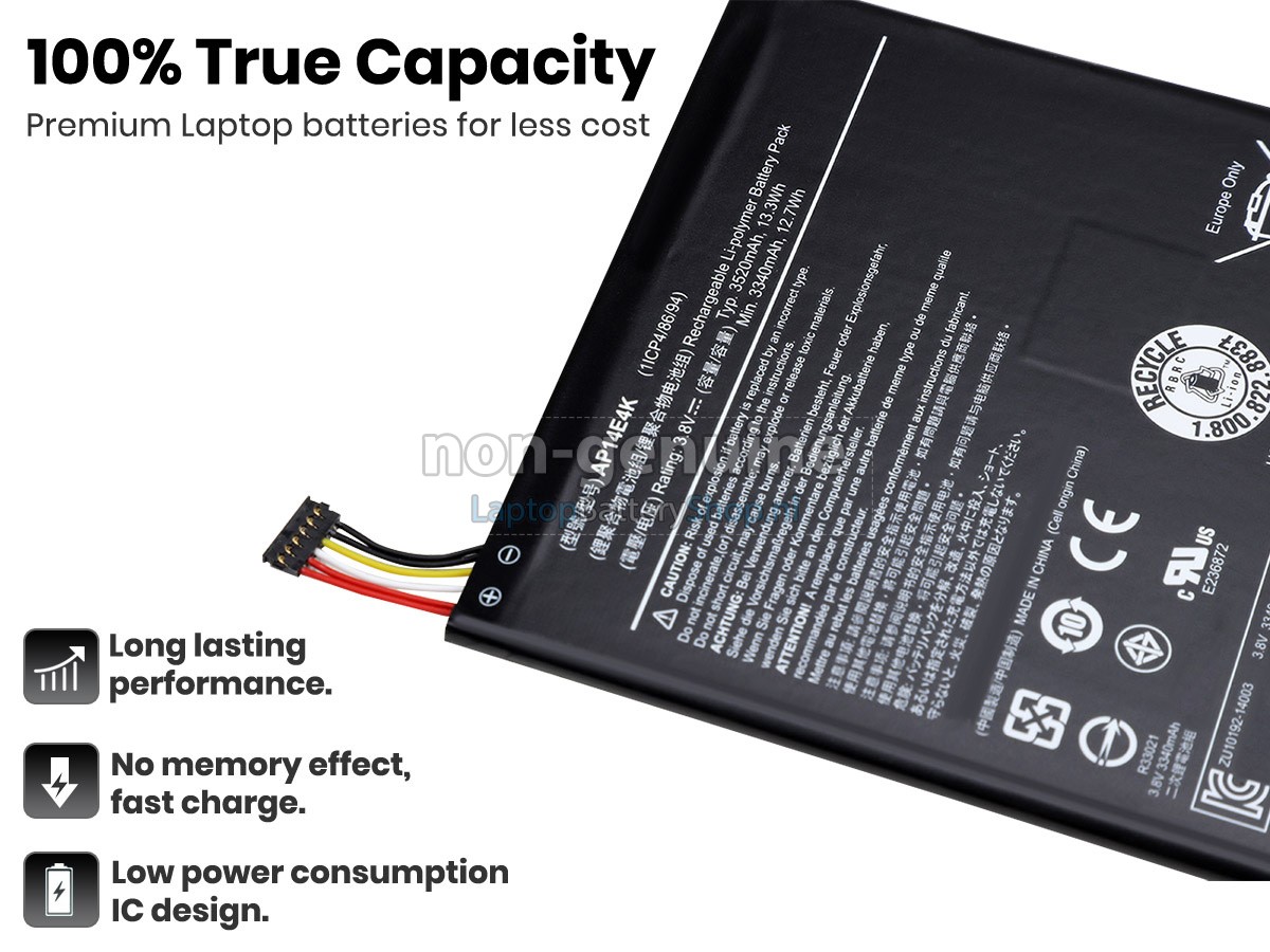 Selecteer de juiste Acer Iconia One 7 B1-750-17CE vervangende batterij. Onder dezelfde gebruiksomstandigheden draagt een batterij met een lagere capaciteit sneller dan een batterij met een hogere capaciteit omdat deze vaker moet worden opgeladen.