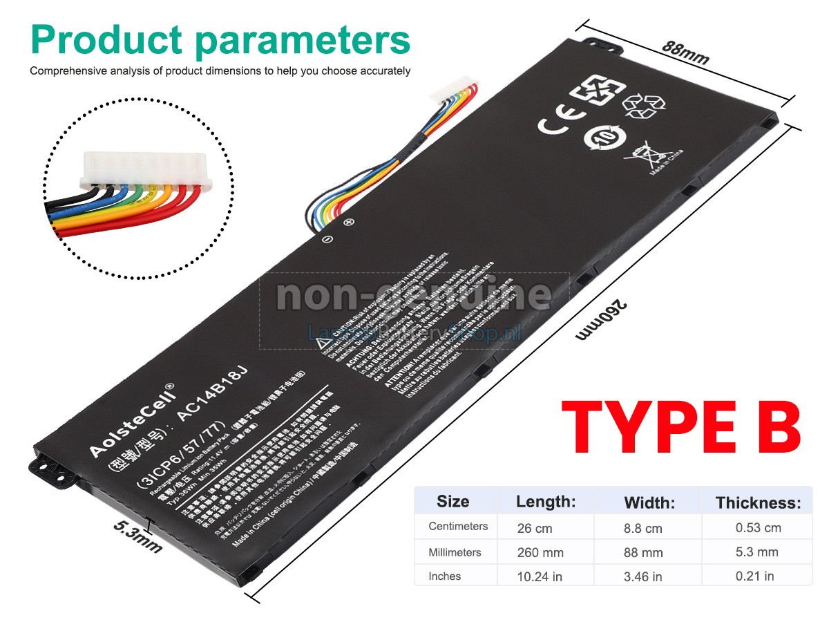 Controleer het model en de vorm van uw originele batterij van de Acer NX.MZ8EG.032 (gebruik Ctrl + F om naar modellen te zoeken). Zorg ervoor dat u de juiste batterij krijgt.