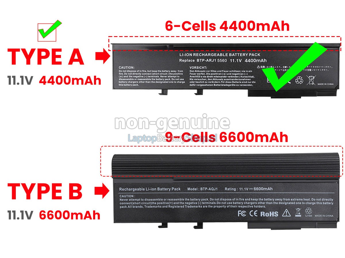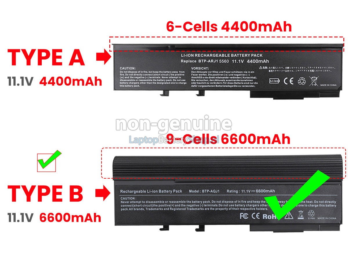 Controleer het model en de vorm van uw originele batterij van de Acer TravelMate 6231 (gebruik Ctrl + F om naar modellen te zoeken). Zorg ervoor dat u de juiste batterij krijgt.