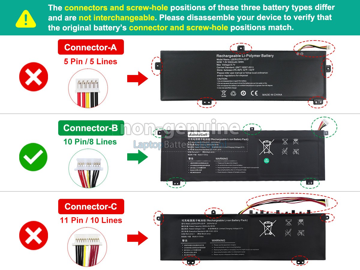 Controleer het model en de vorm van uw originele batterij van de Gateway U3576127PV-2S1P (gebruik Ctrl + F om naar modellen te zoeken). Zorg ervoor dat u de juiste batterij krijgt.