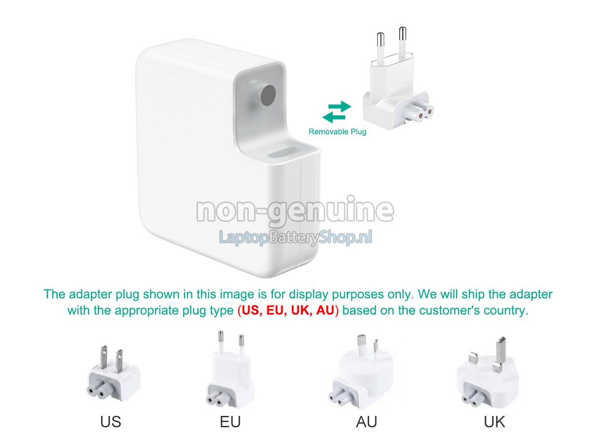 Controleer het model en de vorm van uw originele adapter van de Apple MACBOOK AIR 15-INCH M4 2025 A3241 (gebruik Ctrl + F om naar modellen te zoeken). Zorg ervoor dat u de juiste adapter krijgt.