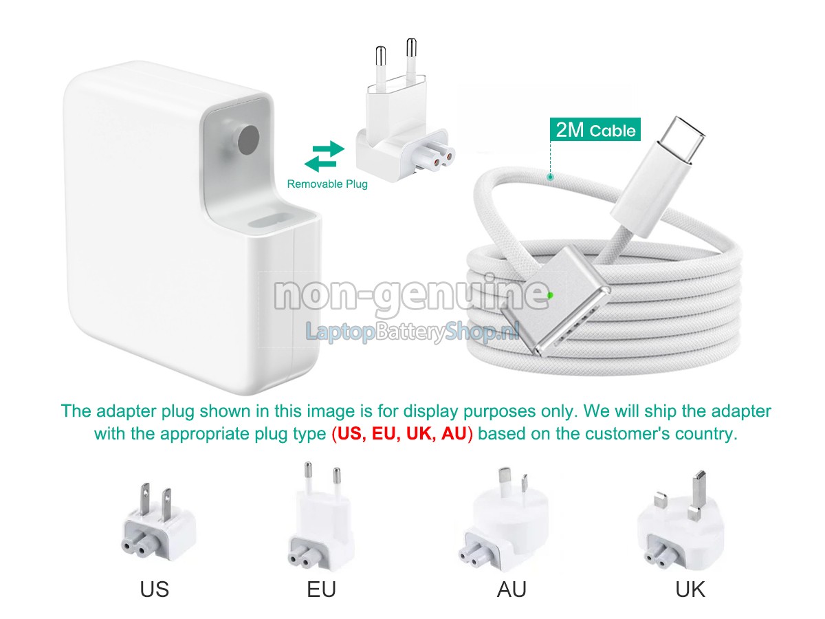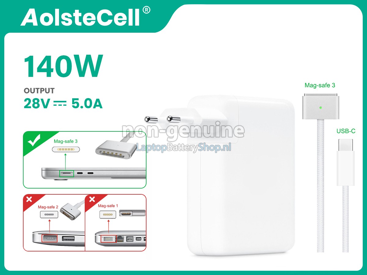 Controleer het model en de vorm van uw originele adapter van de Apple MACBOOK PRO 16-INCH M3 PRO LATE 2023 A2991 (gebruik Ctrl + F om naar modellen te zoeken). Zorg ervoor dat u de juiste adapter krijgt.