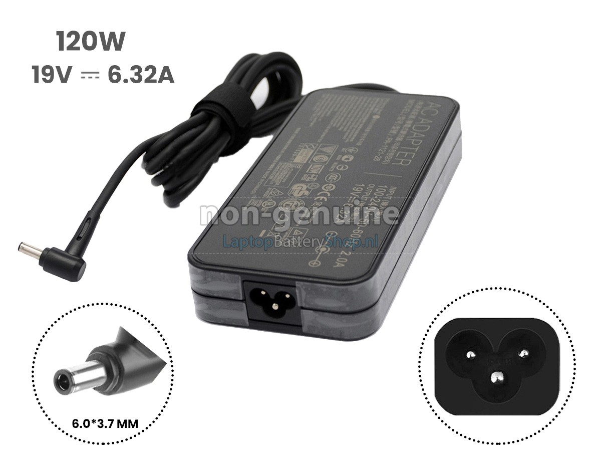 Controleer het model en de vorm van uw originele adapter van de Asus 19V 6.32A 120W 6.0*3.7MM (gebruik Ctrl + F om naar modellen te zoeken). Zorg ervoor dat u de juiste adapter krijgt.