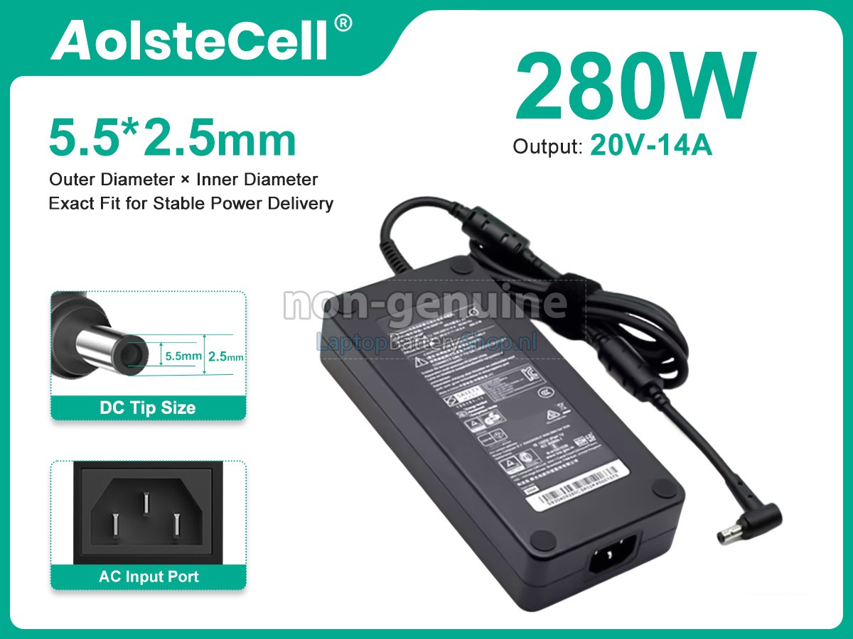 Controleer het model en de vorm van uw originele adapter van de Chicony AORUS 17H BXF I9 I7 RTX4080 (gebruik Ctrl + F om naar modellen te zoeken). Zorg ervoor dat u de juiste adapter krijgt.