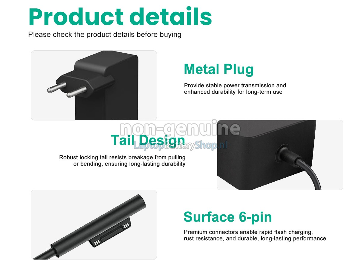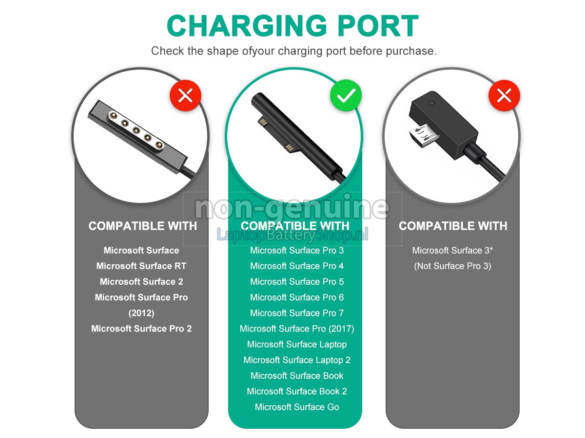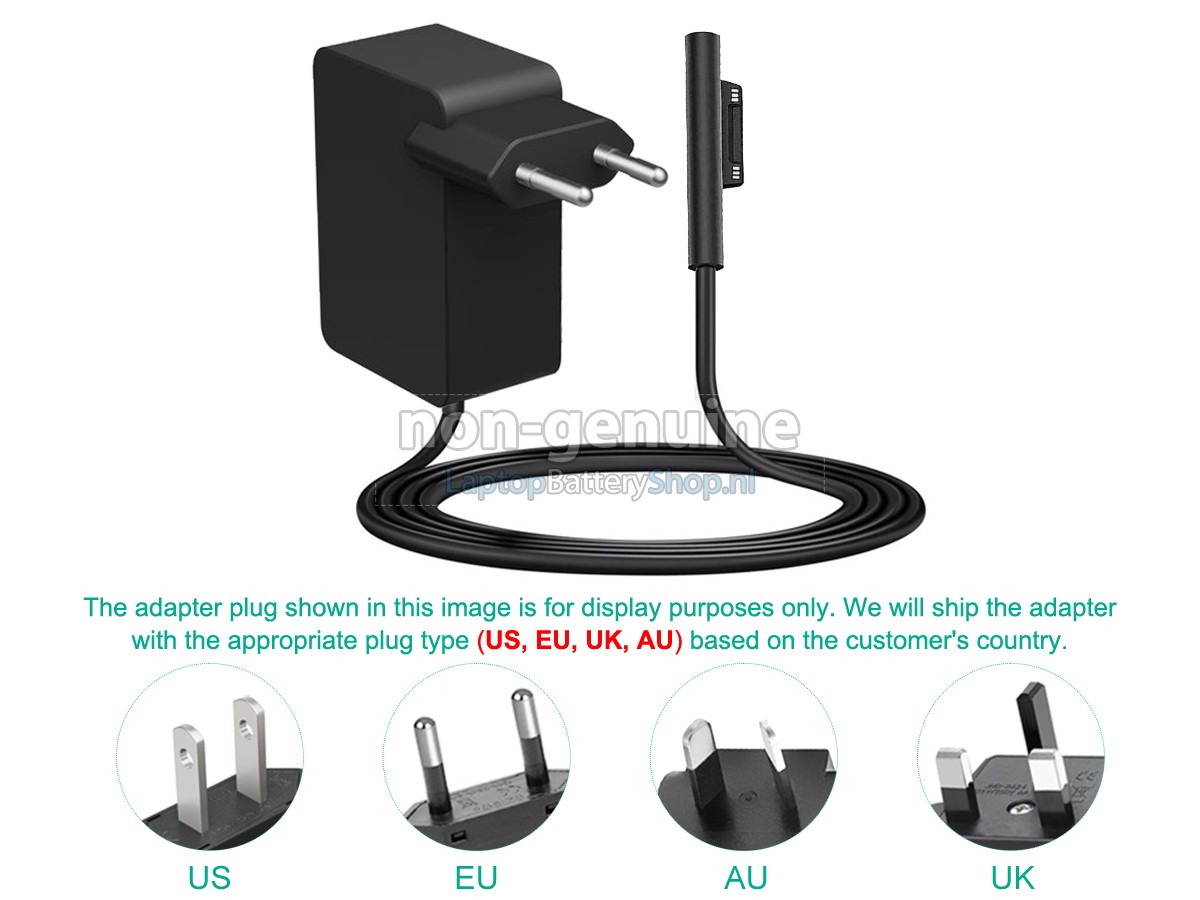 Controleer het model en de vorm van uw originele adapter van de Microsoft surface 1736 GO M3 1824 (gebruik Ctrl + F om naar modellen te zoeken). Zorg ervoor dat u de juiste adapter krijgt.