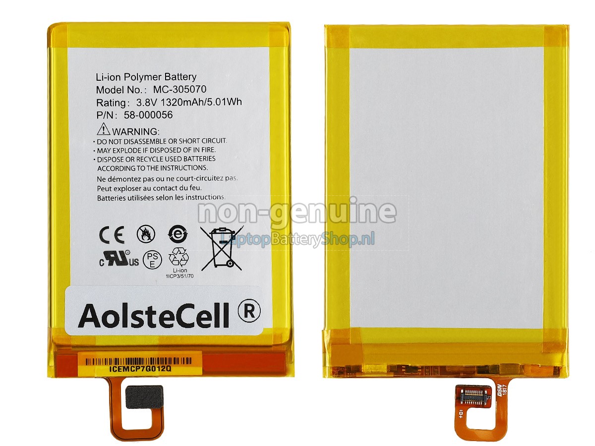 Controleer het model en de vorm van uw originele batterij van de Amazon MC-305070 (gebruik Ctrl + F om naar modellen te zoeken). Zorg ervoor dat u de juiste batterij krijgt.
