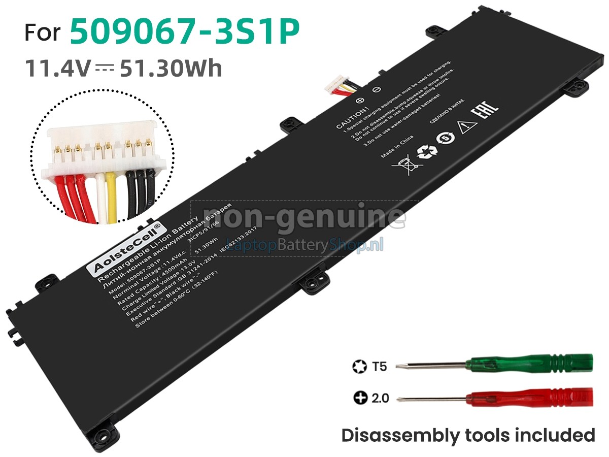 Controleer het model en de vorm van uw originele batterij van de AolsteCell 509067-3S1P (gebruik Ctrl + F om naar modellen te zoeken). Zorg ervoor dat u de juiste batterij krijgt.