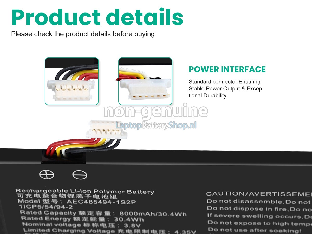 Controleer het model en de vorm van uw originele batterij van de AolsteCell AEC485494-1S2P (gebruik Ctrl + F om naar modellen te zoeken). Zorg ervoor dat u de juiste batterij krijgt.