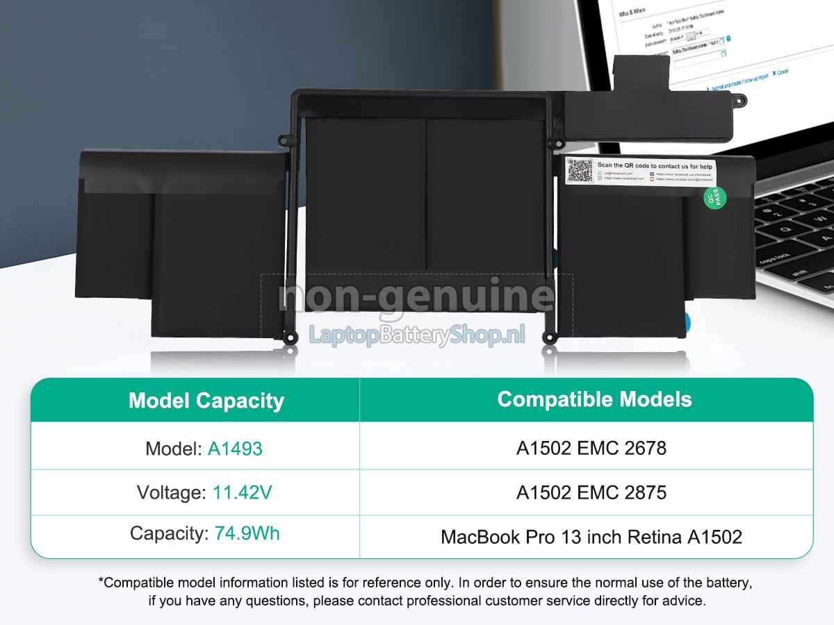 100% OEM-compatibel met de originele Apple MacBook Pro 13" Retina A1502 (Mid 2014) accu.