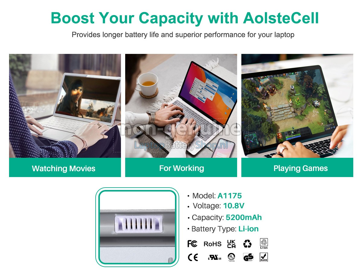 2. This battery(A1175) only compatibility with Apple MacBook Pro A1150(EMC 2101),A1211(EMC 2120),A1226(EMC 2136),A1260(EMC 2198).