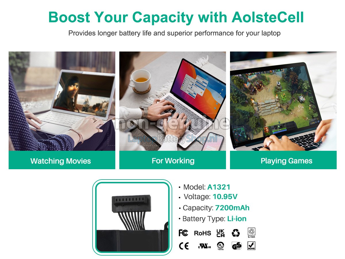 Note : 1. 10.95V and 11.1V are compatible, they are in common use. 2. This battery(A1321) only fits for Apple MacBook Pro 15 inch A1286(Mid 2009,Mid 2010).3. Package Includes: 1 x Battery ,2 x Screwdrivers.