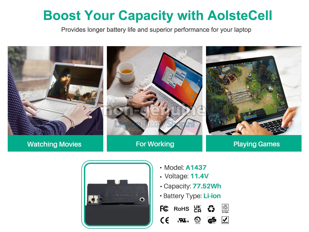 2. This battery(A1437) only fits for Apple MacBook Pro 13.3 Inch Retina A1425(EMC 2557)(Late 2012) and A1425(EMC 2672)(Early 2013).3. Package Includes: 1 x Battery ,2 x Screwdrivers.