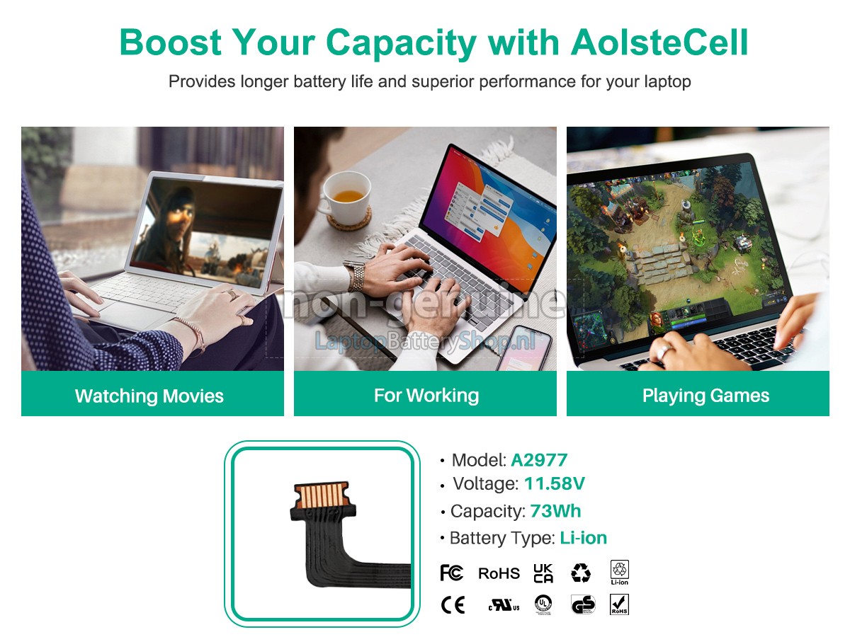 Controleer het model en de vorm van uw originele batterij van de Apple MacBook Pro M3 Pro 11 CPU 14 GPU 14 A2992 EMC 8407 (gebruik Ctrl + F om naar modellen te zoeken). Zorg ervoor dat u de juiste batterij krijgt.