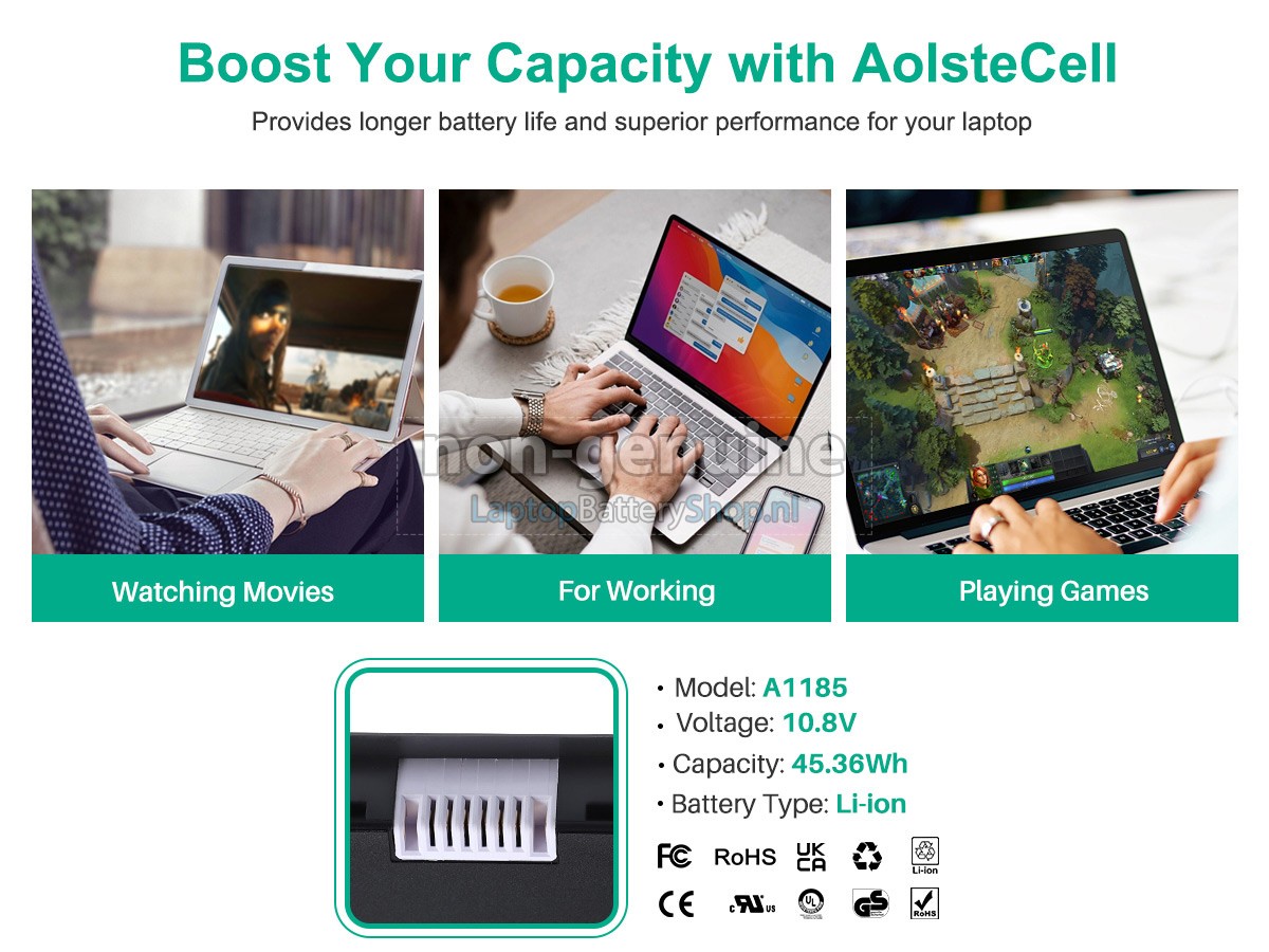 Wij hebben strenge eisen aan de prestaties en veiligheid van producten. De Apple MB061LL/A laptop accu moet een aantal strenge kwaliteitscontroles en veiligheidstests ondergaan. Bovendien wordt de Apple MB061LL/A-vervangende batterij rechtstreeks op laptopbatteryshop.nl verkocht en kost daarom ongeveer 20-50% minder dan andere tussenpersonen en fysieke winkels.