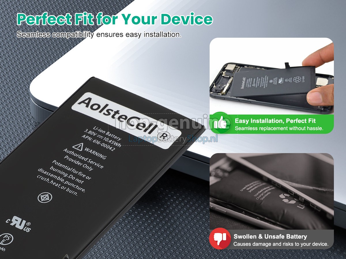 De Apple MKUE2 accu met lange levensduur bevat A-batterijen voor een langere levensduur van de batterij en meer oplaadcycli. Snelle levering, gemakkelijke terugkeer, 100% restitutie binnen 30 dagen. This battery is not compatible with iPhone 6 Plus. Package Includes one battery with installation Tool Kit.