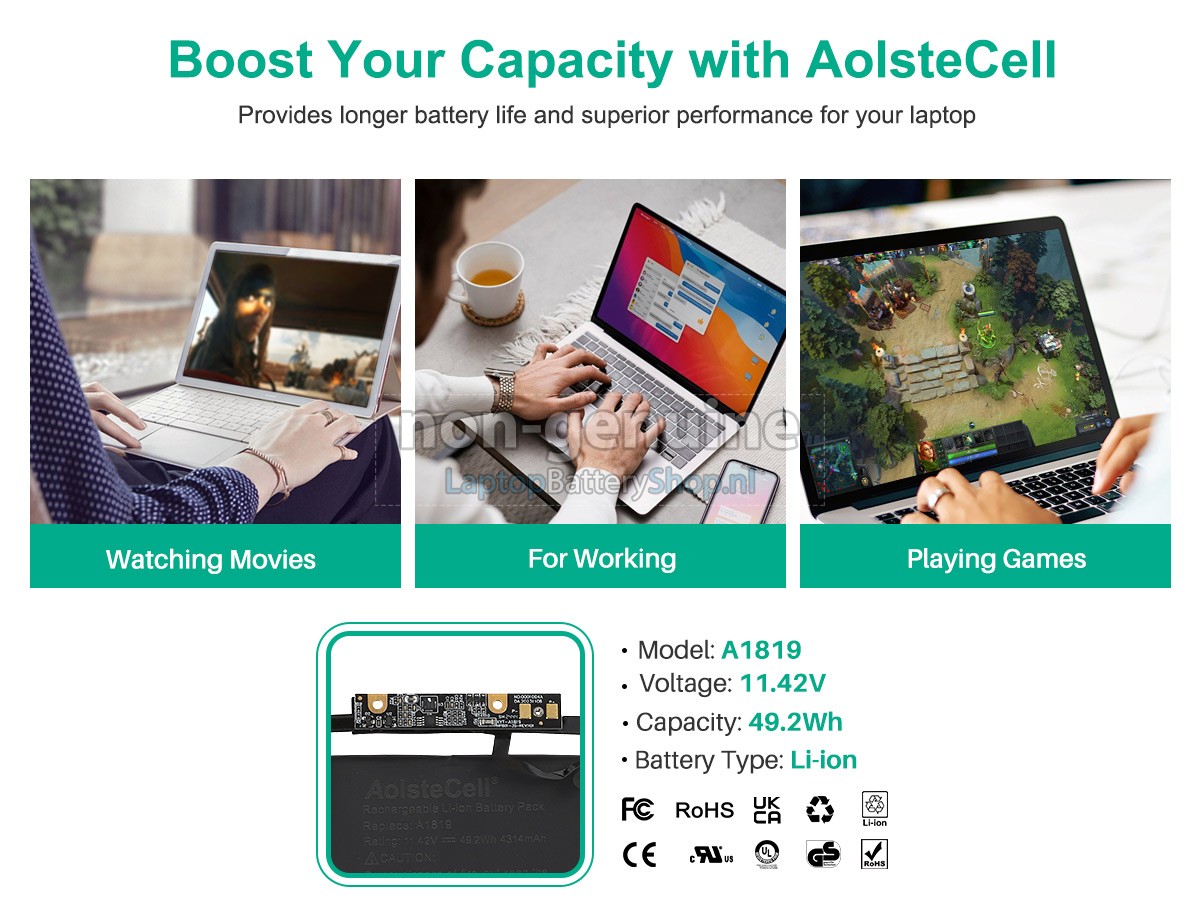 Wij hebben strenge eisen aan de prestaties en veiligheid van producten. De Apple MLH12LL laptop accu moet een aantal strenge kwaliteitscontroles en veiligheidstests ondergaan. Bovendien wordt de Apple MLH12LL-vervangende batterij rechtstreeks op laptopbatteryshop.nl verkocht en kost daarom ongeveer 20-50% minder dan andere tussenpersonen en fysieke winkels.