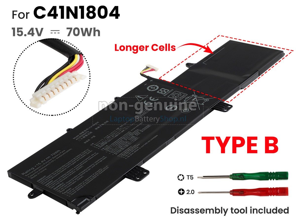 Controleer het model en de vorm van uw originele batterij van de Asus 0B200-02980200 (gebruik Ctrl + F om naar modellen te zoeken). Zorg ervoor dat u de juiste batterij krijgt.