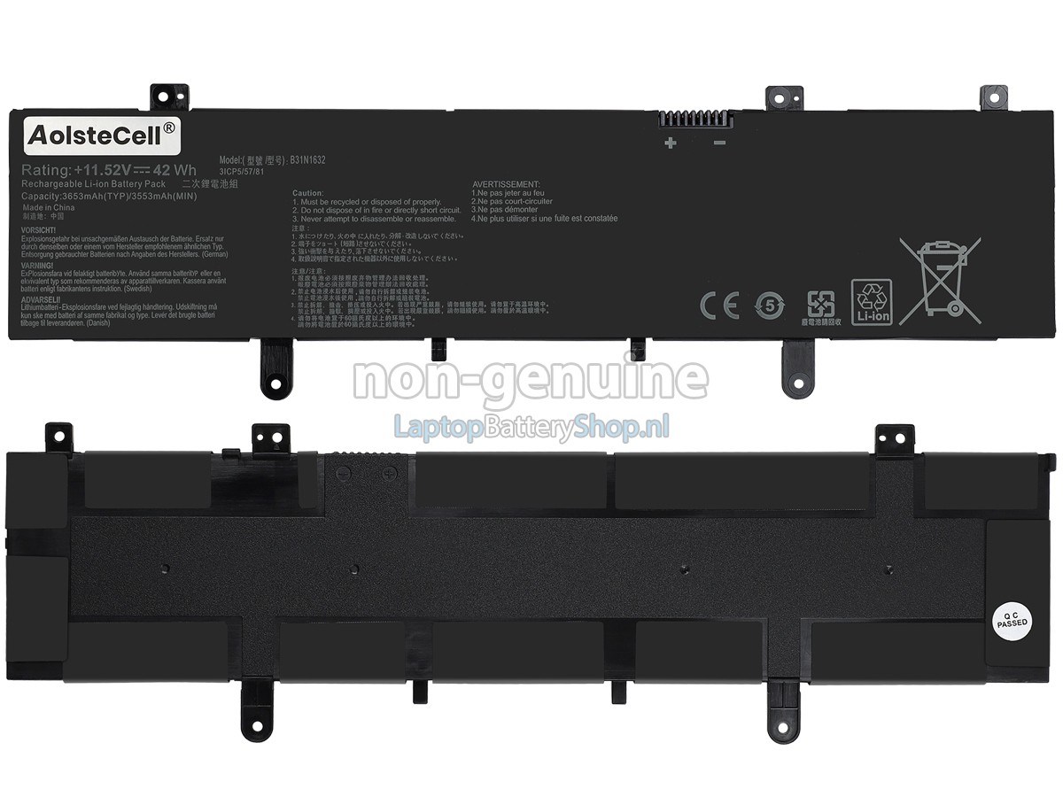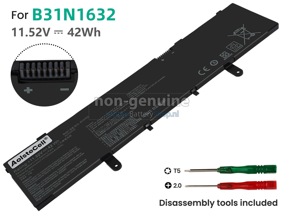 Controleer het model en de vorm van uw originele batterij van de Asus B31N1632 (gebruik Ctrl + F om naar modellen te zoeken). Zorg ervoor dat u de juiste batterij krijgt.