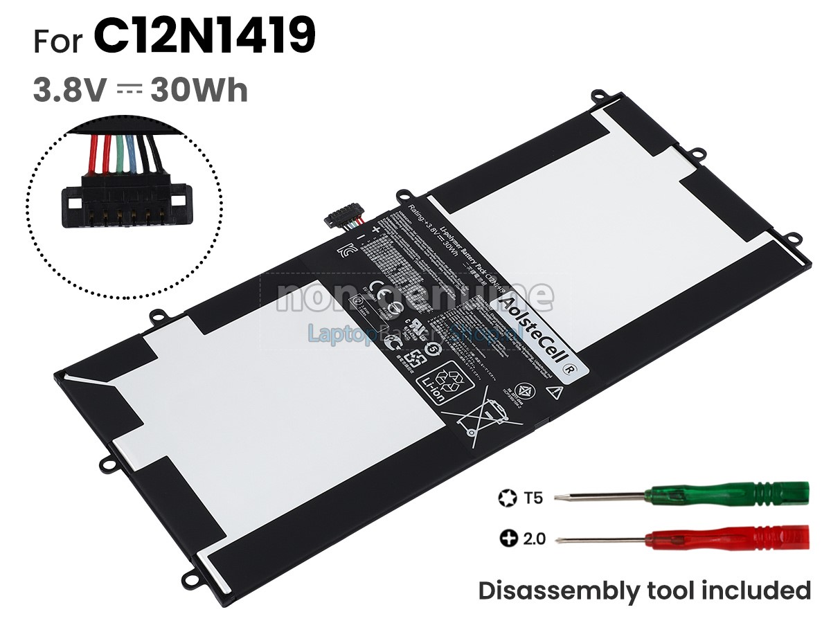 Controleer het model en de vorm van uw originele batterij van de Asus C12N1419 (gebruik Ctrl + F om naar modellen te zoeken). Zorg ervoor dat u de juiste batterij krijgt.