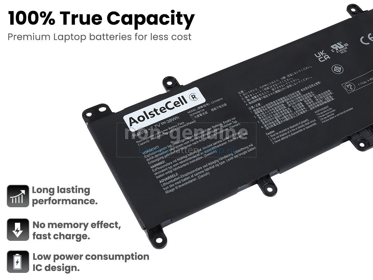Controleer het model en de vorm van uw originele batterij van de Asus C21N2014(2ICP4/59/134) (gebruik Ctrl + F om naar modellen te zoeken). Zorg ervoor dat u de juiste batterij krijgt.