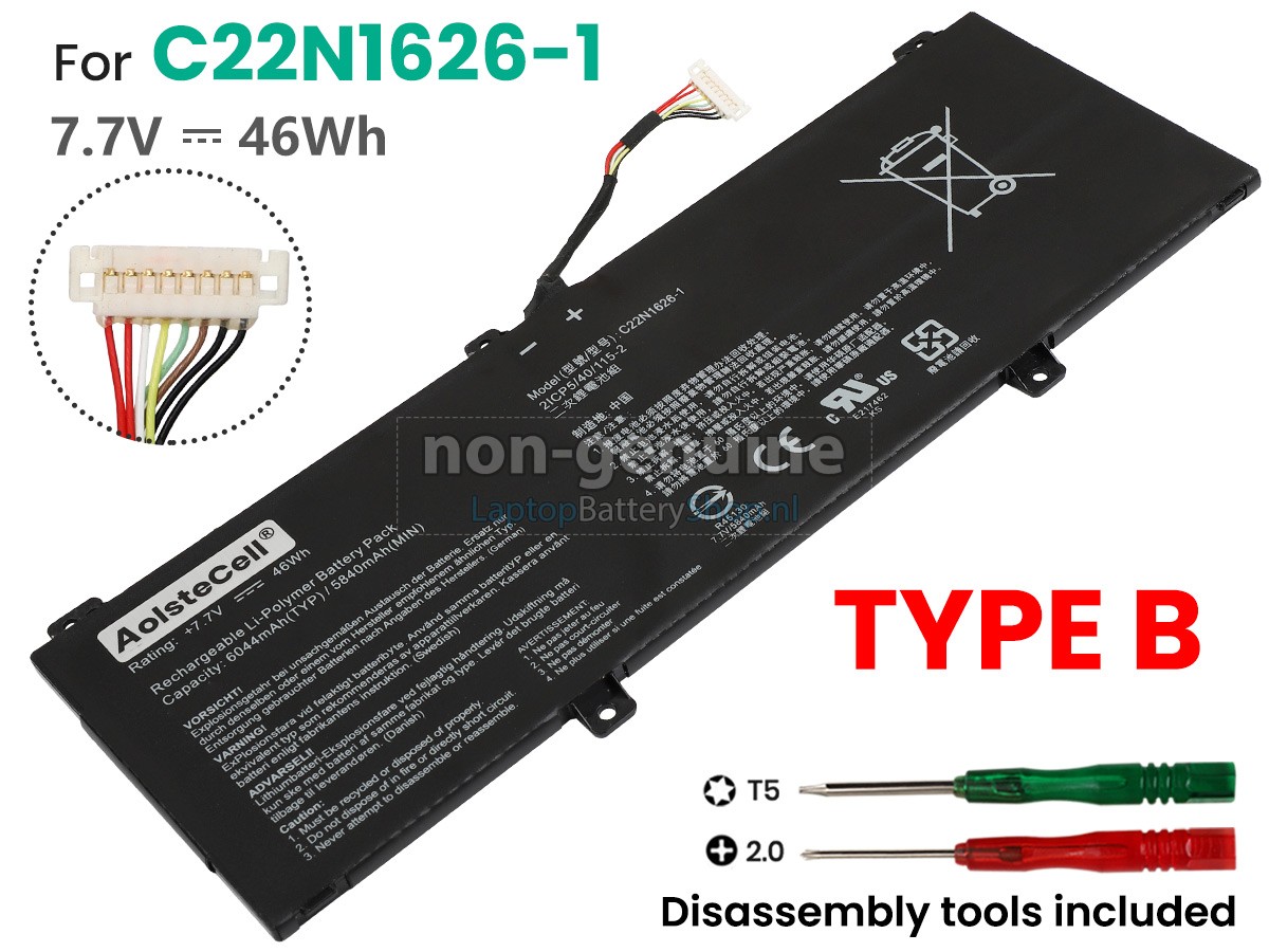Controleer het model en de vorm van uw originele batterij van de Asus C22PJJ1 (gebruik Ctrl + F om naar modellen te zoeken). Zorg ervoor dat u de juiste batterij krijgt.