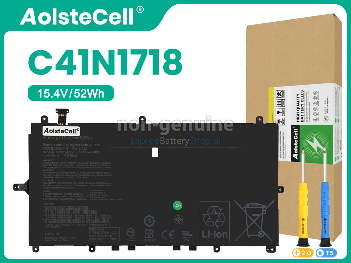 Controleer het model en de vorm van uw originele batterij van de Asus NOVAGO TP370QL-EL002T (gebruik Ctrl + F om naar modellen te zoeken). Zorg ervoor dat u de juiste batterij krijgt.