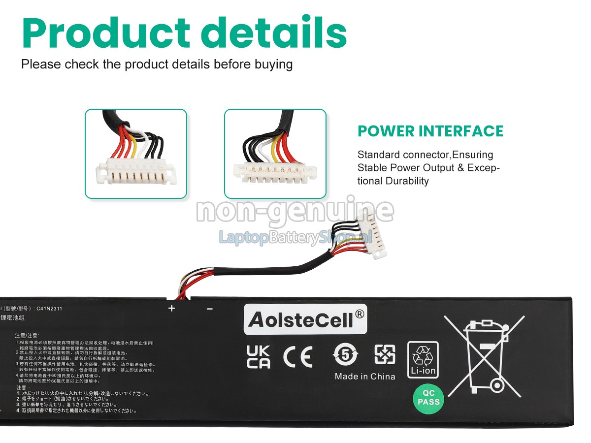Controleer het model en de vorm van uw originele batterij van de Asus Rog AllY X CONSOLE 2024 (gebruik Ctrl + F om naar modellen te zoeken). Zorg ervoor dat u de juiste batterij krijgt.