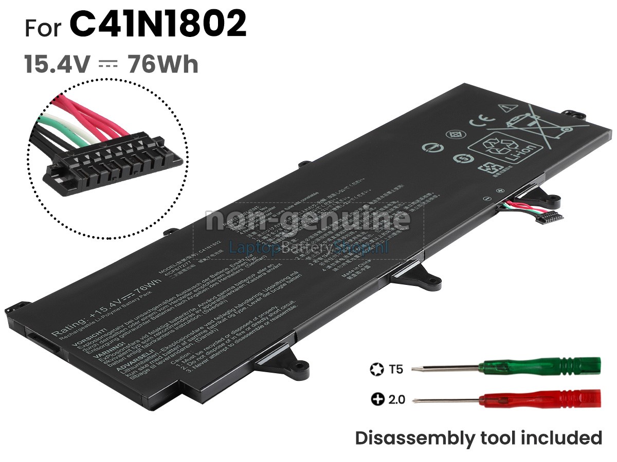 Controleer het model en de vorm van uw originele batterij van de Asus Rog ZEPHYRUS S GX735GW (gebruik Ctrl + F om naar modellen te zoeken). Zorg ervoor dat u de juiste batterij krijgt.