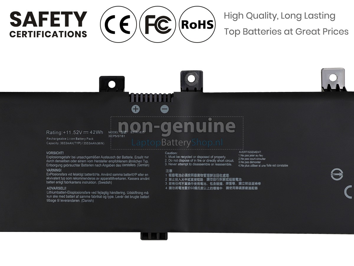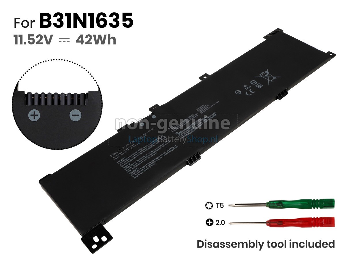 Controleer het model en de vorm van uw originele batterij van de Asus VivoBook F705UV-BX186T (gebruik Ctrl + F om naar modellen te zoeken). Zorg ervoor dat u de juiste batterij krijgt.