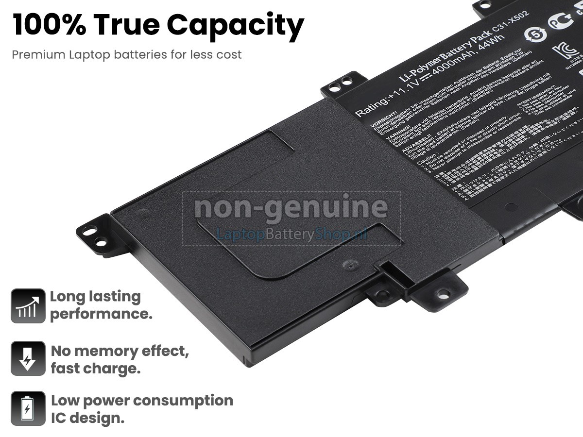 Controleer het model en de vorm van uw originele batterij van de Asus VivoBook V500CA-DB71T (gebruik Ctrl + F om naar modellen te zoeken). Zorg ervoor dat u de juiste batterij krijgt.