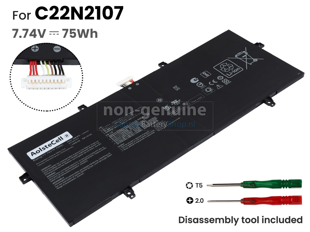 Controleer het model en de vorm van uw originele batterij van de Asus ZenBook 14 OLED UX3402ZA-OLEDS75 (gebruik Ctrl + F om naar modellen te zoeken). Zorg ervoor dat u de juiste batterij krijgt.