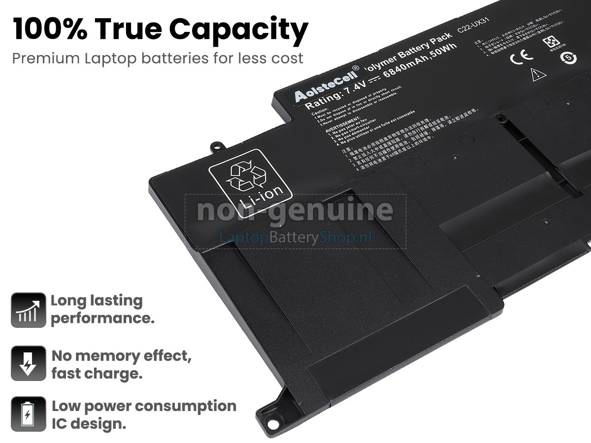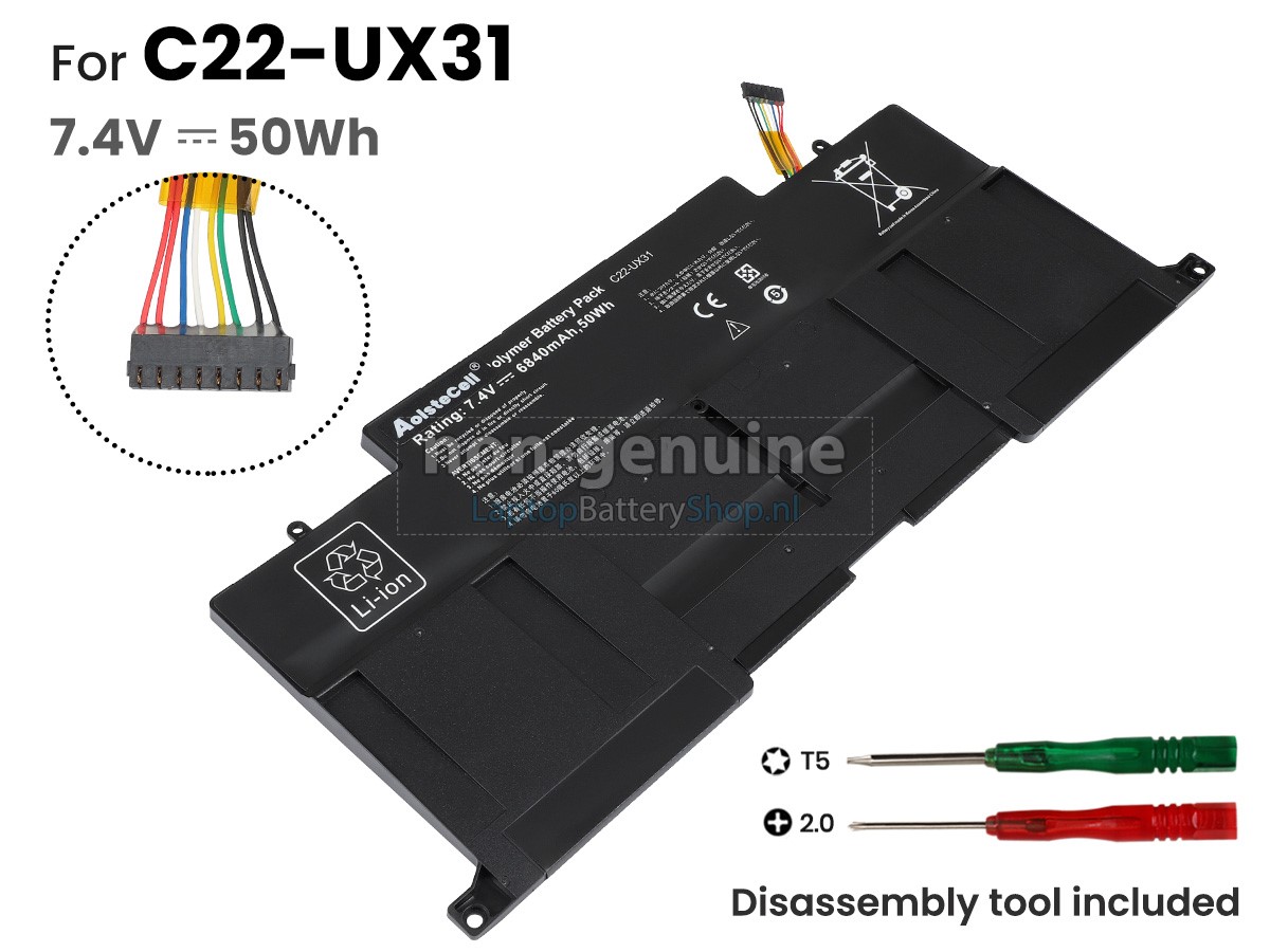 Controleer het model en de vorm van uw originele batterij van de Asus ZenBook BX31A (gebruik Ctrl + F om naar modellen te zoeken). Zorg ervoor dat u de juiste batterij krijgt.