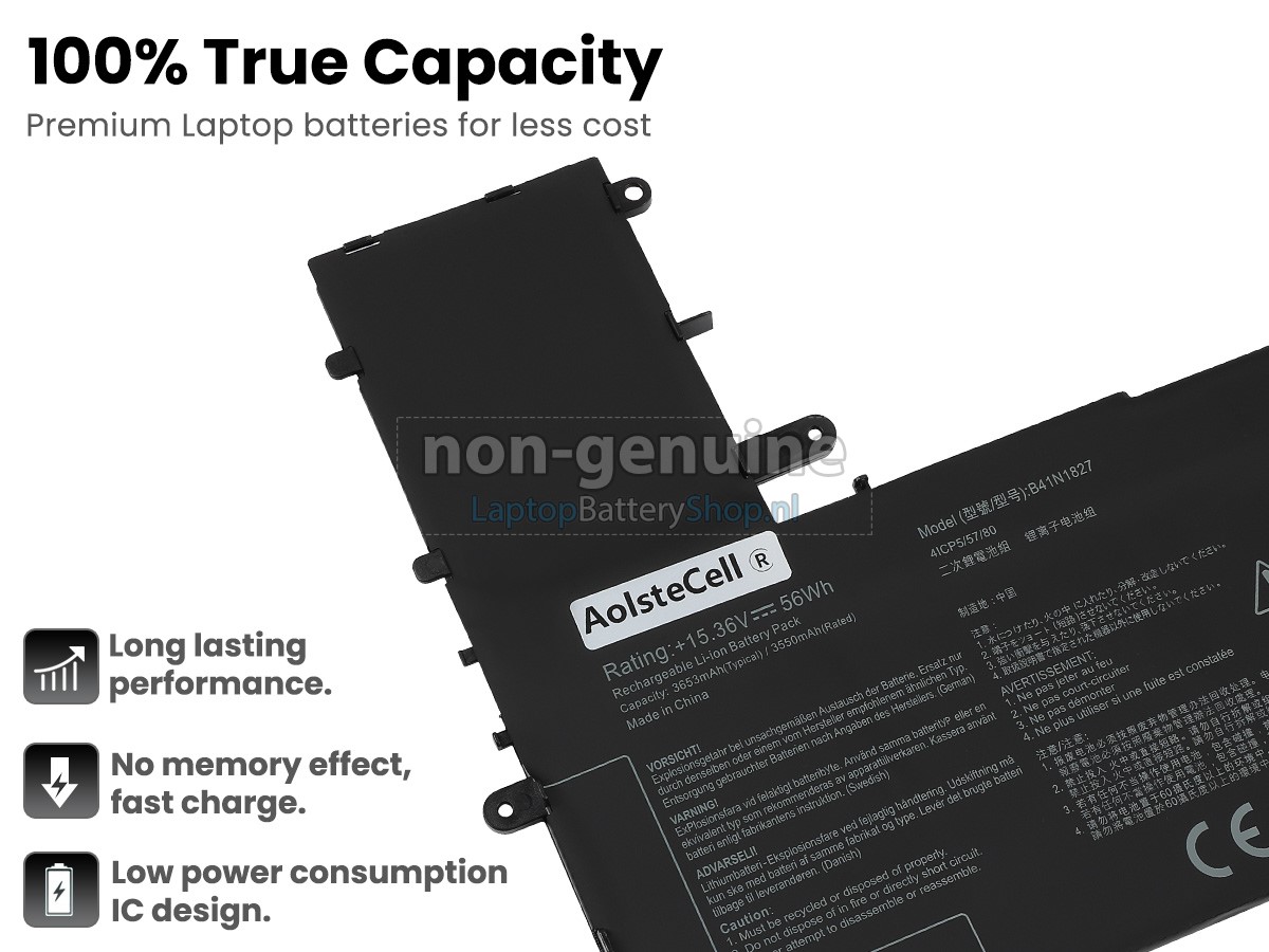 Selecteer de juiste Asus ZenBook Flip 15 UM562IA-WB501T vervangende batterij. Onder dezelfde gebruiksomstandigheden draagt een batterij met een lagere capaciteit sneller dan een batterij met een hogere capaciteit omdat deze vaker moet worden opgeladen.