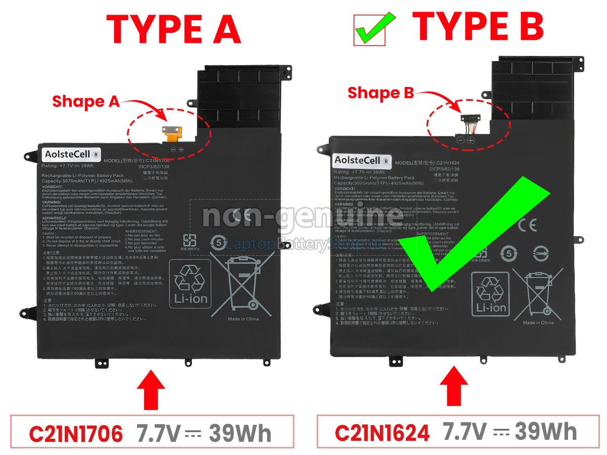 De Asus ZenBook Flip S UX370UA-0161A8250U accu met lange levensduur bevat A-batterijen voor een langere levensduur van de batterij en meer oplaadcycli. Snelle levering, gemakkelijke terugkeer, 100% restitutie binnen 30 dagen. There are 2 types battery, please open your laptop to check your old battery first before placing an order. Please note the battery connector is different.
