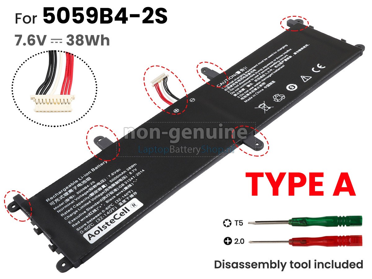 Controleer het model en de vorm van uw originele batterij van de CHUWI 059B4-2S1P(2ICP5/59/115) (gebruik Ctrl + F om naar modellen te zoeken). Zorg ervoor dat u de juiste batterij krijgt.