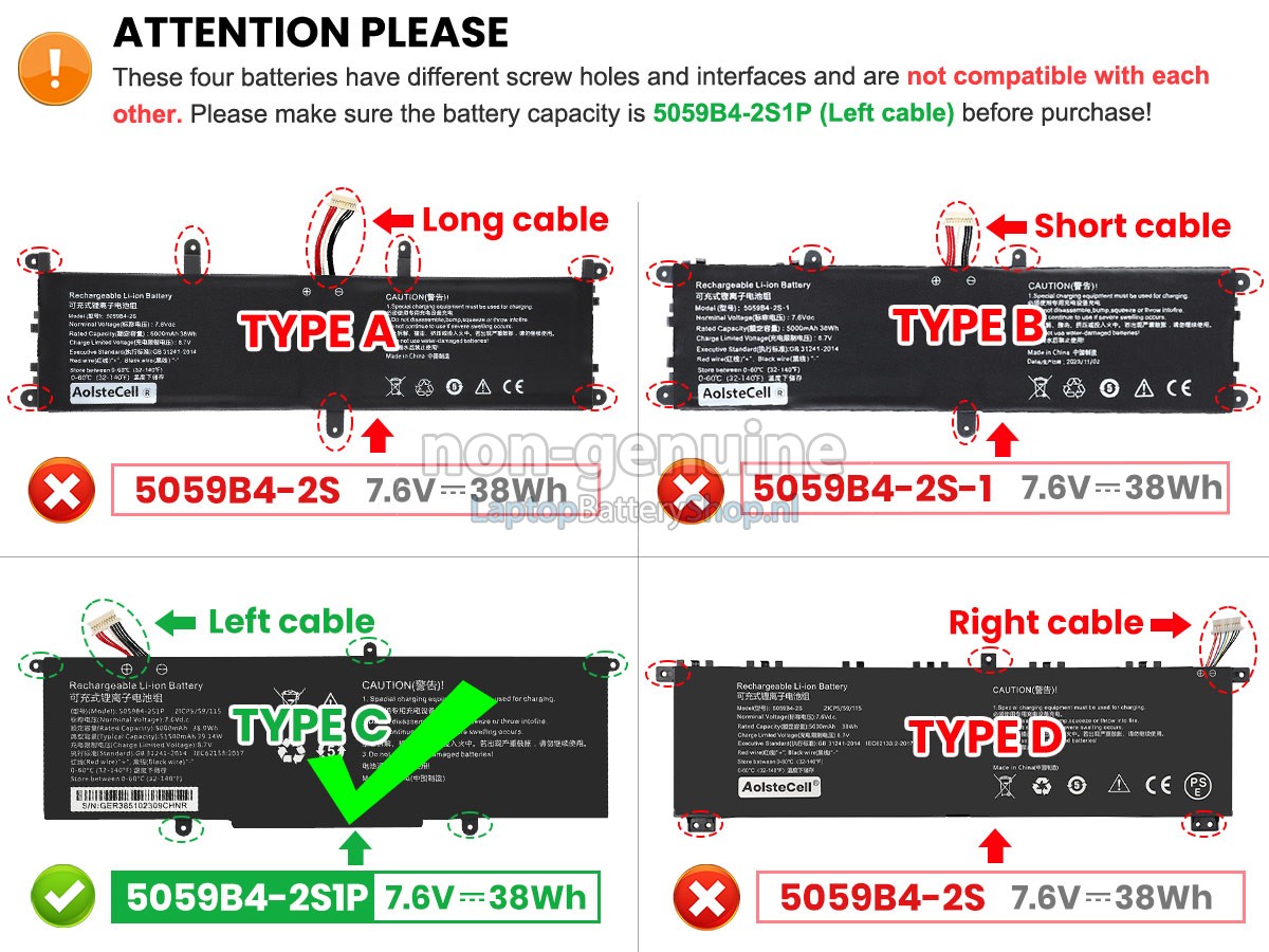 Controleer het model en de vorm van uw originele batterij van de CHUWI 5059B4-2S-1 (gebruik Ctrl + F om naar modellen te zoeken). Zorg ervoor dat u de juiste batterij krijgt.