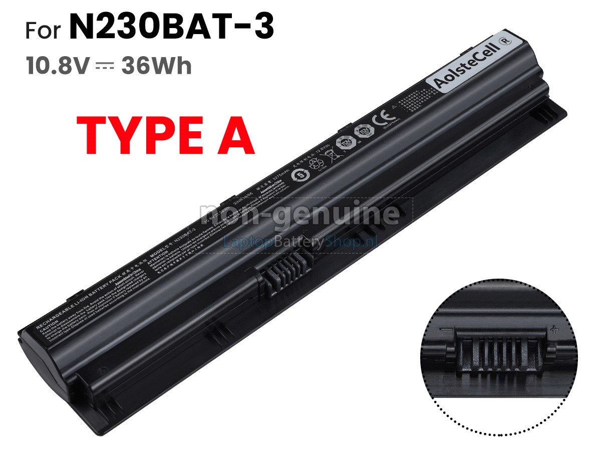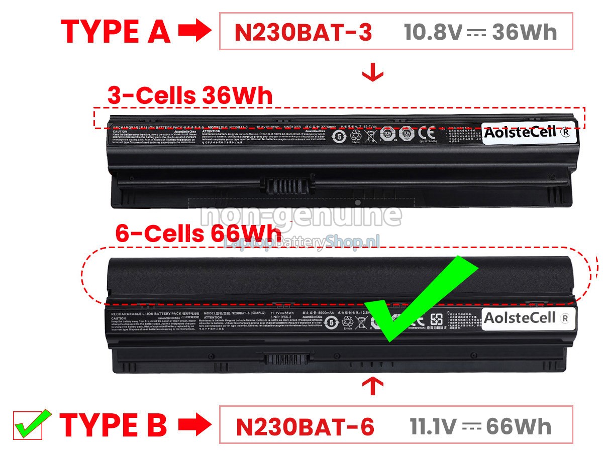 Controleer het model en de vorm van uw originele batterij van de Clevo N232WU (gebruik Ctrl + F om naar modellen te zoeken). Zorg ervoor dat u de juiste batterij krijgt.