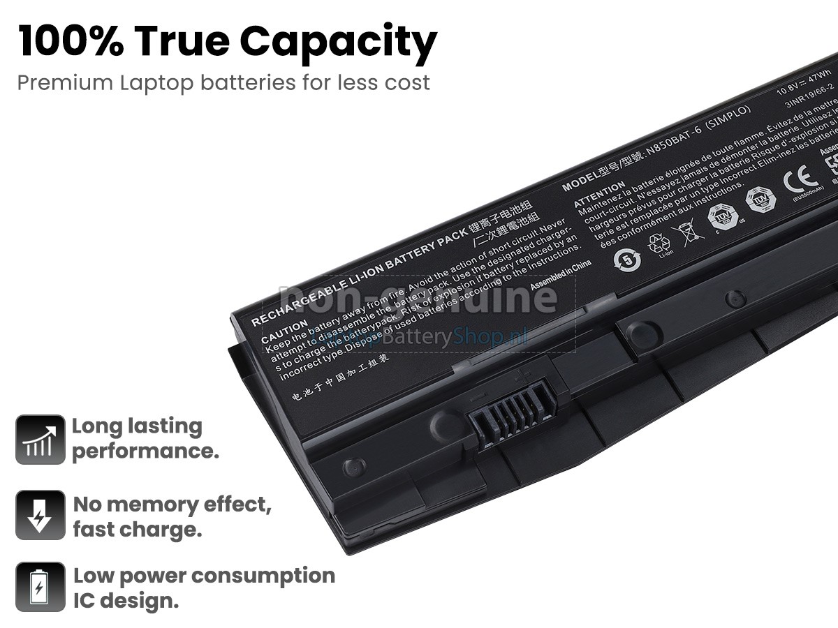 De Clevo N850HJ1 accu met lange levensduur bevat A-batterijen voor een langere levensduur van de batterij en meer oplaadcycli. Snelle levering, gemakkelijke terugkeer, 100% restitutie binnen 30 dagen. Type A and Type B are fully compatible, the only difference is the capacity. Type B is a high-capacity battery.