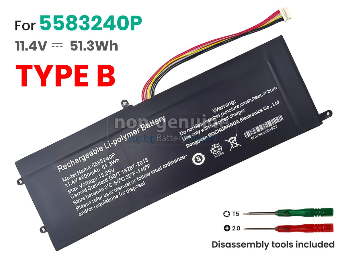 De Cooyes 5583240P accu met lange levensduur bevat A-batterijen voor een langere levensduur van de batterij en meer oplaadcycli. Snelle levering, gemakkelijke terugkeer, 100% restitutie binnen 30 dagen. Please open the computer and check the battery appearance and parameters is【11.4V, 51.3Wh】 before placing the order .