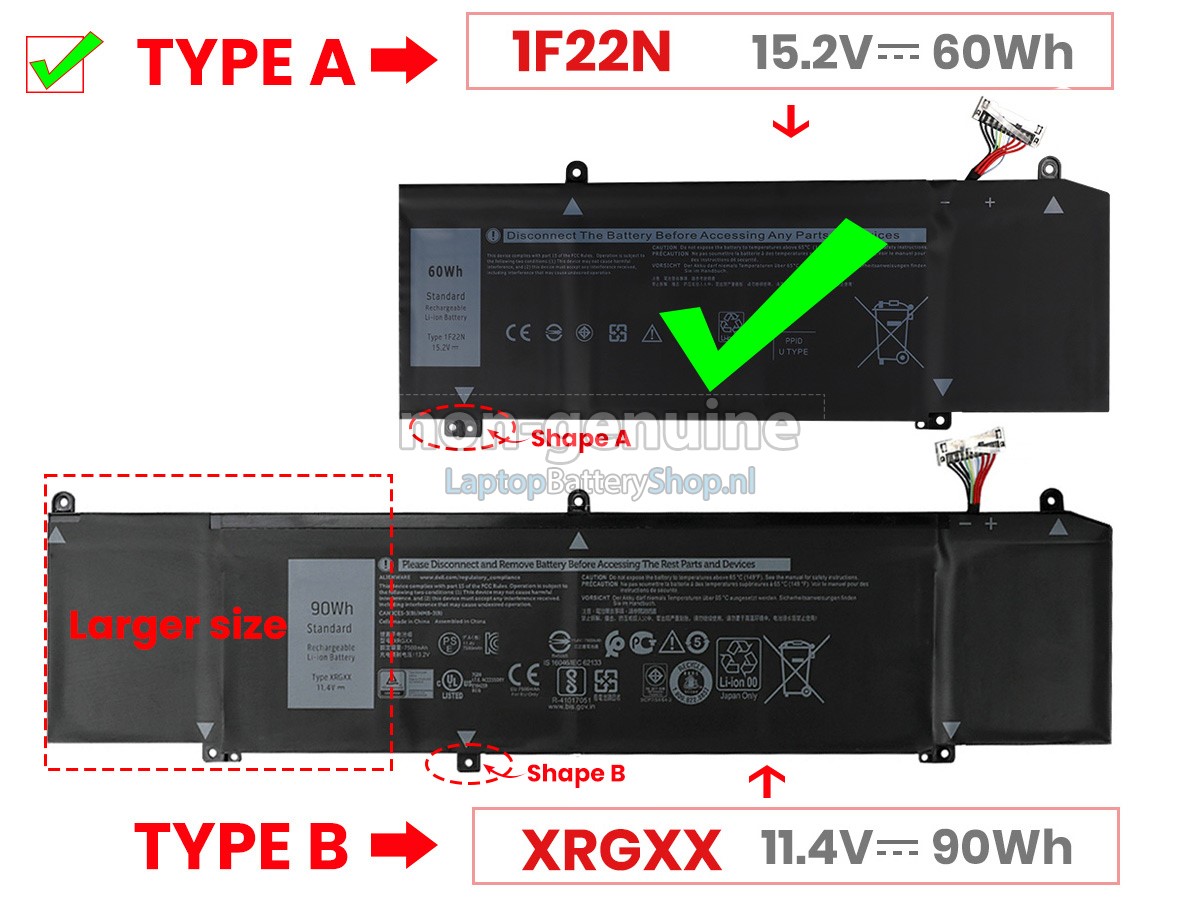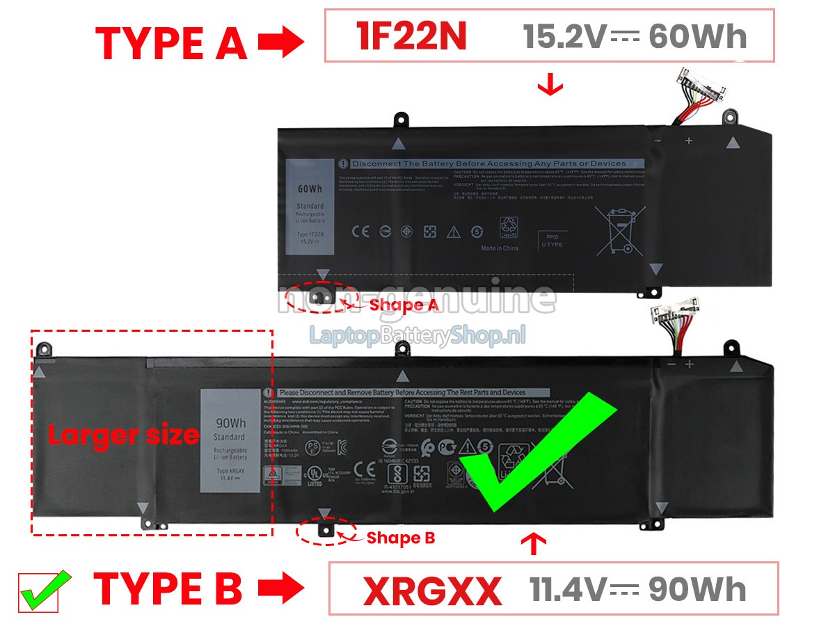 Controleer het model en de vorm van uw originele batterij van de Dell G7 7790-R1762B (gebruik Ctrl + F om naar modellen te zoeken). Zorg ervoor dat u de juiste batterij krijgt.