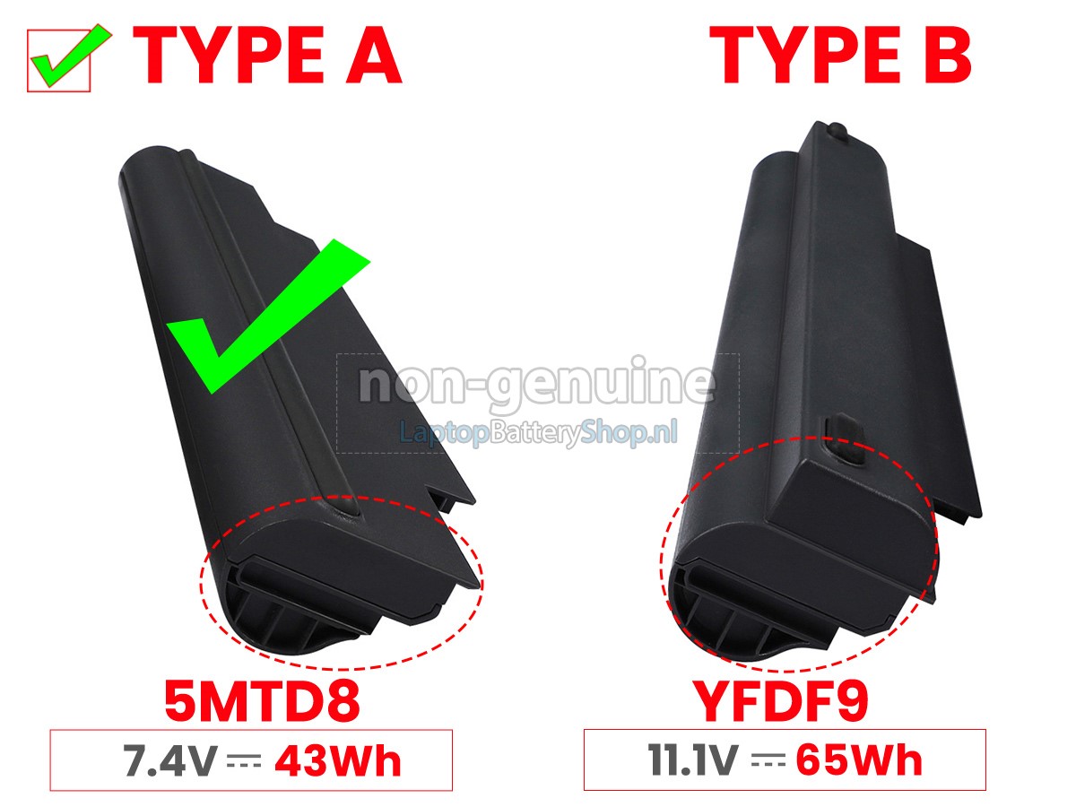 Controleer het model en de vorm van uw originele batterij van de Dell H4PJP (gebruik Ctrl + F om naar modellen te zoeken). Zorg ervoor dat u de juiste batterij krijgt.
