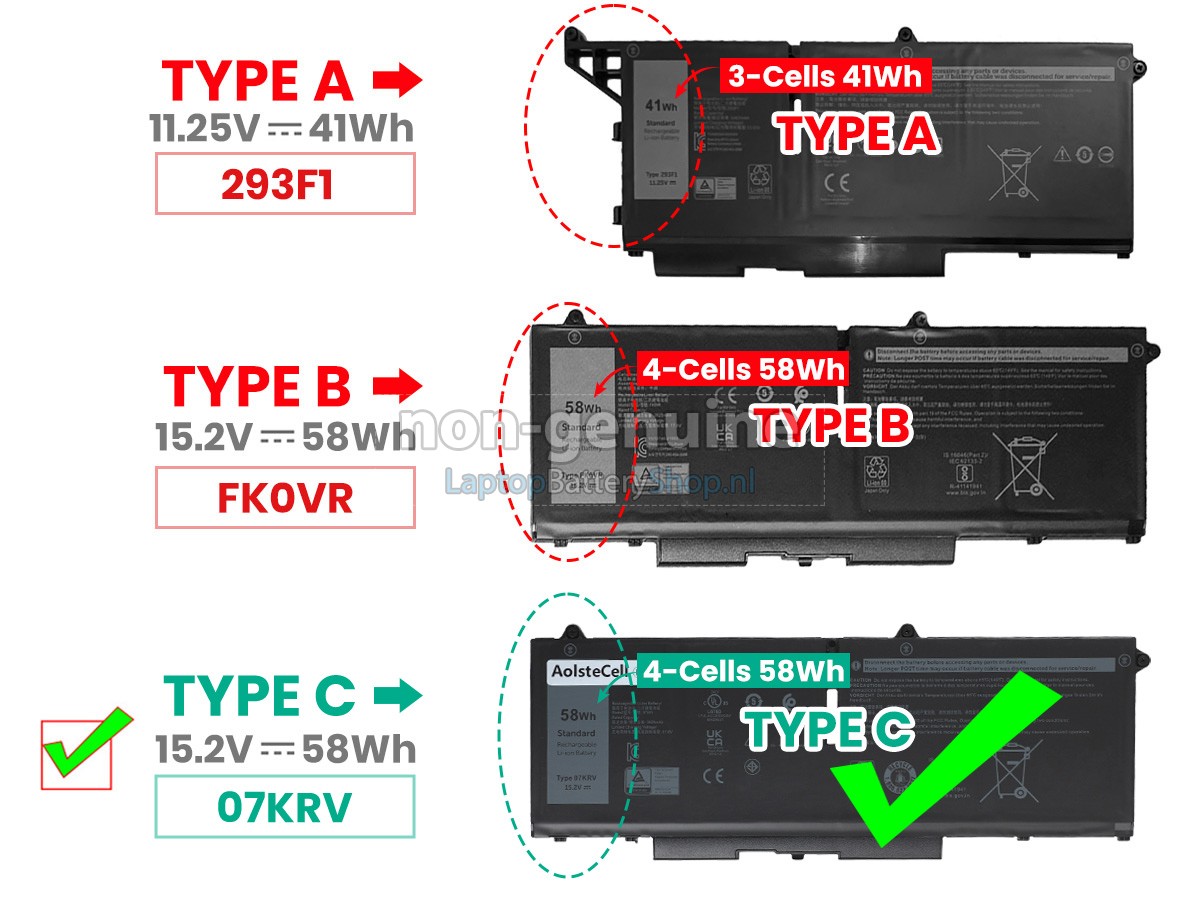 Controleer het model en de vorm van uw originele batterij van de Dell Latitude 5330 (gebruik Ctrl + F om naar modellen te zoeken). Zorg ervoor dat u de juiste batterij krijgt.