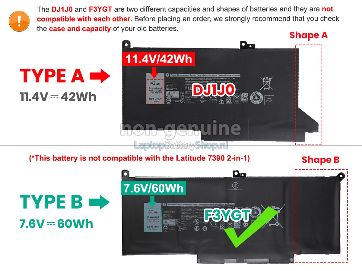 Controleer het model en de vorm van uw originele batterij van de Dell Latitude 7380 (gebruik Ctrl + F om naar modellen te zoeken). Zorg ervoor dat u de juiste batterij krijgt.