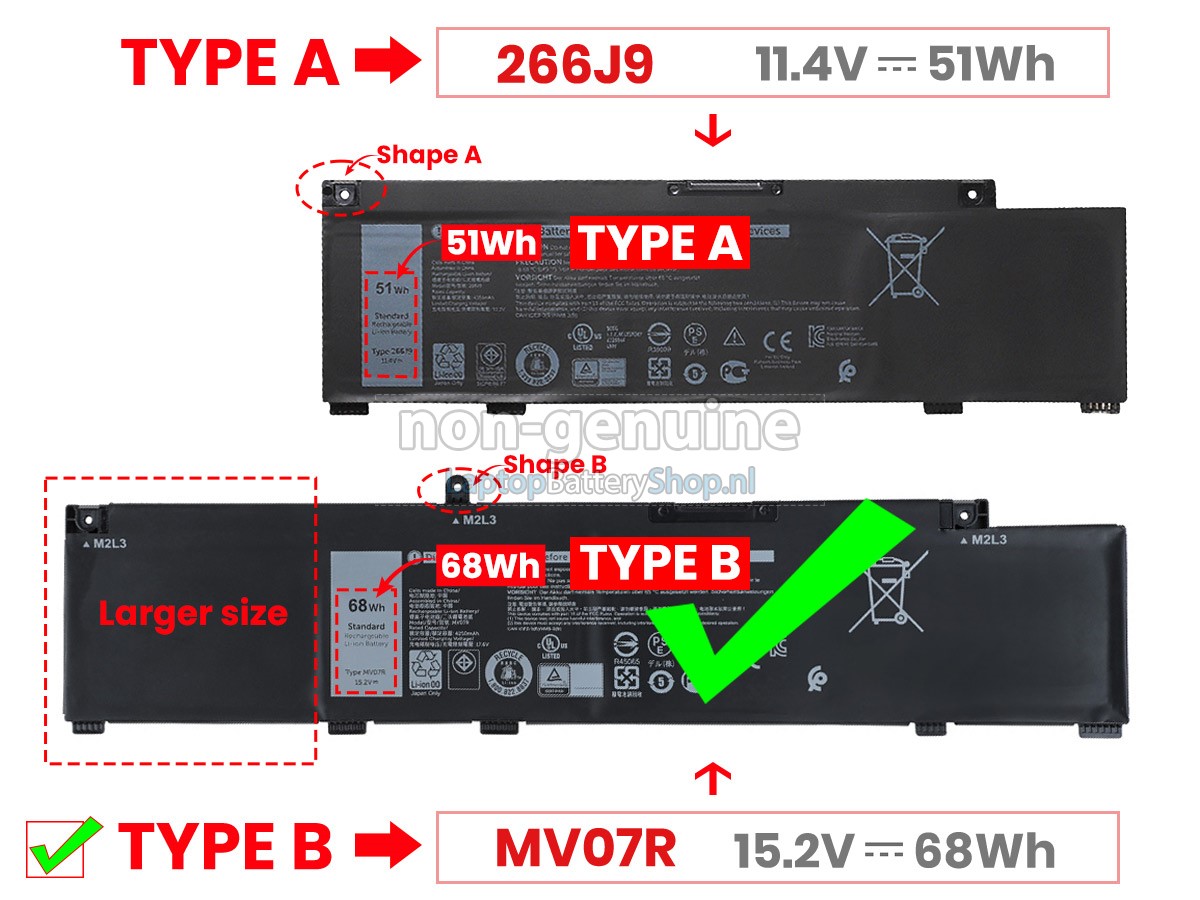 Controleer het model en de vorm van uw originele batterij van de Dell MV07R (gebruik Ctrl + F om naar modellen te zoeken). Zorg ervoor dat u de juiste batterij krijgt.