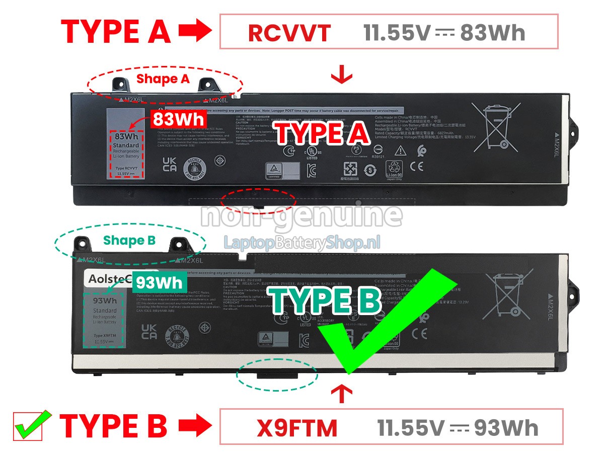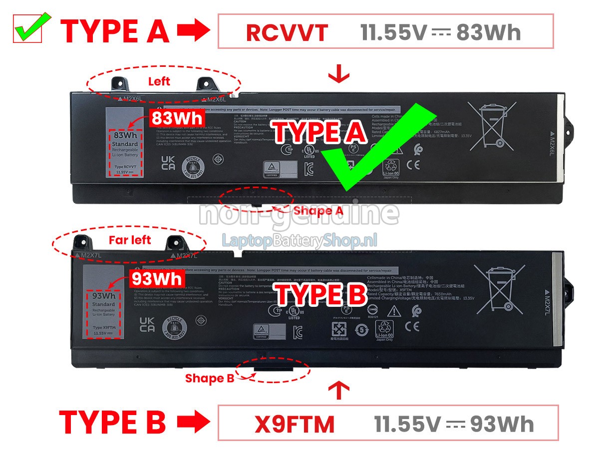 Controleer het model en de vorm van uw originele batterij van de Dell Precision 7670 (gebruik Ctrl + F om naar modellen te zoeken). Zorg ervoor dat u de juiste batterij krijgt.