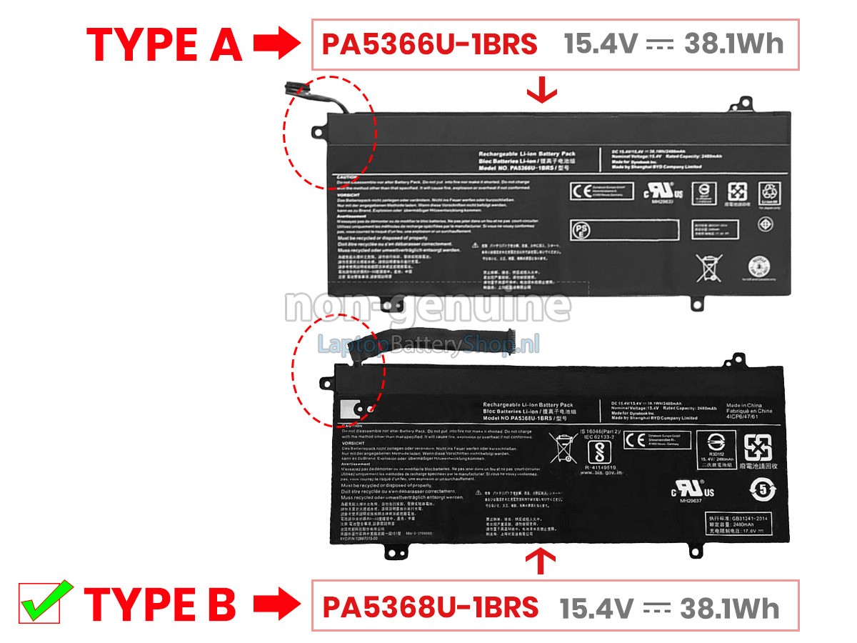 Controleer het model en de vorm van uw originele batterij van de Dynabook SATELLITE PRO L40-G (gebruik Ctrl + F om naar modellen te zoeken). Zorg ervoor dat u de juiste batterij krijgt.