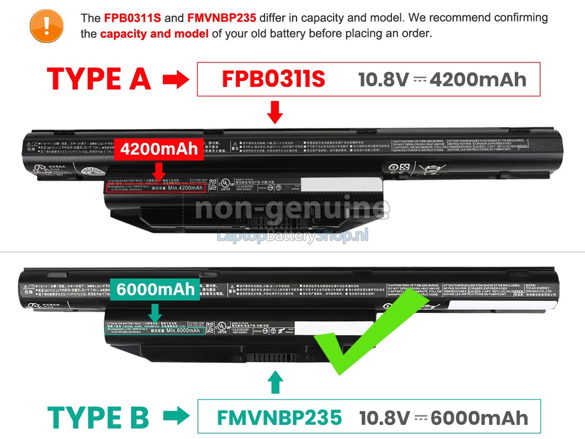 Controleer het model en de vorm van uw originele batterij van de Fujitsu FPB0297S (gebruik Ctrl + F om naar modellen te zoeken). Zorg ervoor dat u de juiste batterij krijgt.